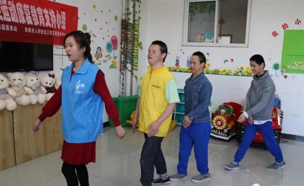2018年4月19日,“三区计划”项目社工为阜阳市社会儿童福利院的孩子们开展了第五节阳光天使运动康复教育支持小组活动,这也是本次运动康复教育支持小组的最后一次活动。孤残儿童运动康复教育支持小组为组员创造了一个面对面的密切沟通的环境,组员们在这样一个环境中认识自我与他人,激发了组员们的运动能力。